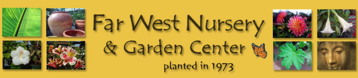 Far West Nursery and Garden Center offers an abundance of ornamental landscape plants to satisfy your garden needs. We stock plants appropriate for Central Coast microclimates, many of which are drought tolerant, or native plants that encourage wildlife and polli-nators. We also have colorful flowering plants, fruit trees, and privacy screening plants.